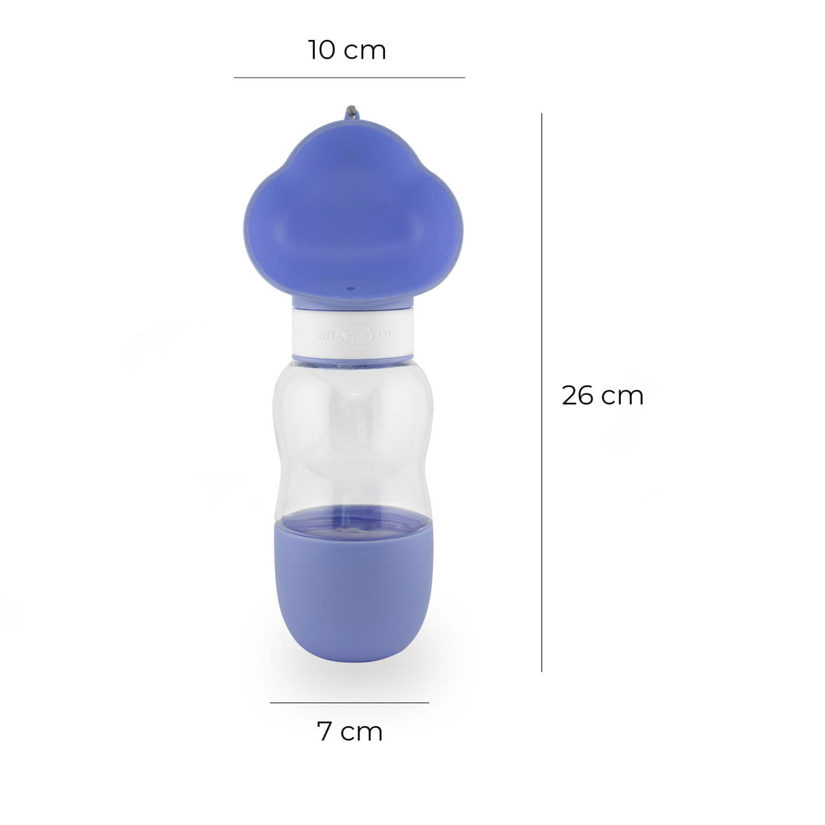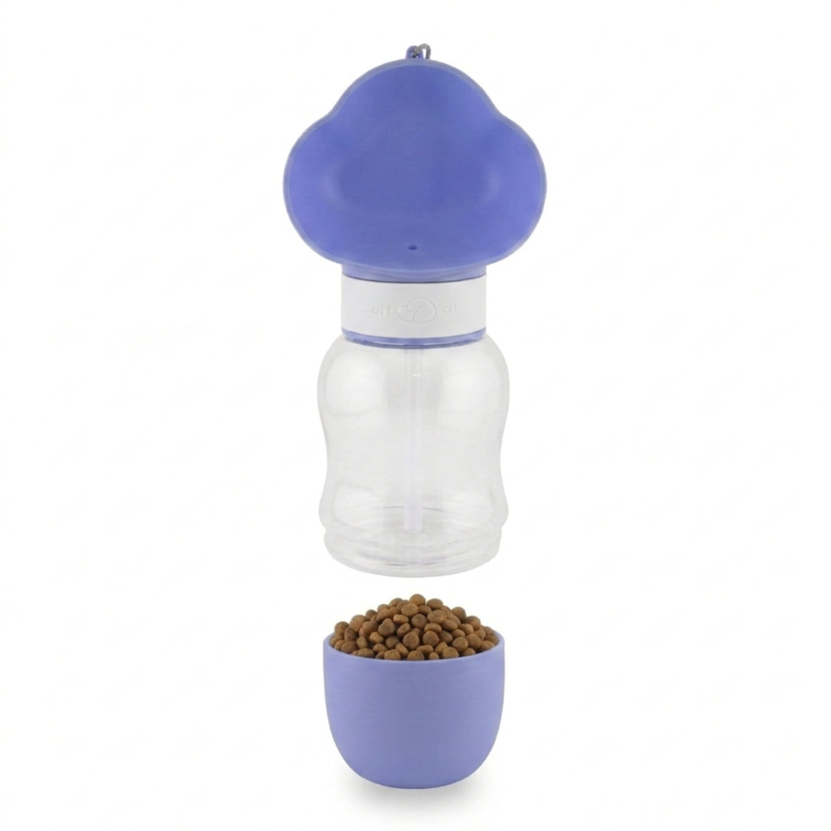Dolna część butelki to szczelny schowek na suchą karmę lub ulubione przysmaki. To świetne rozwiązanie na dłuższe spacery, treningi i wyjazdy.
