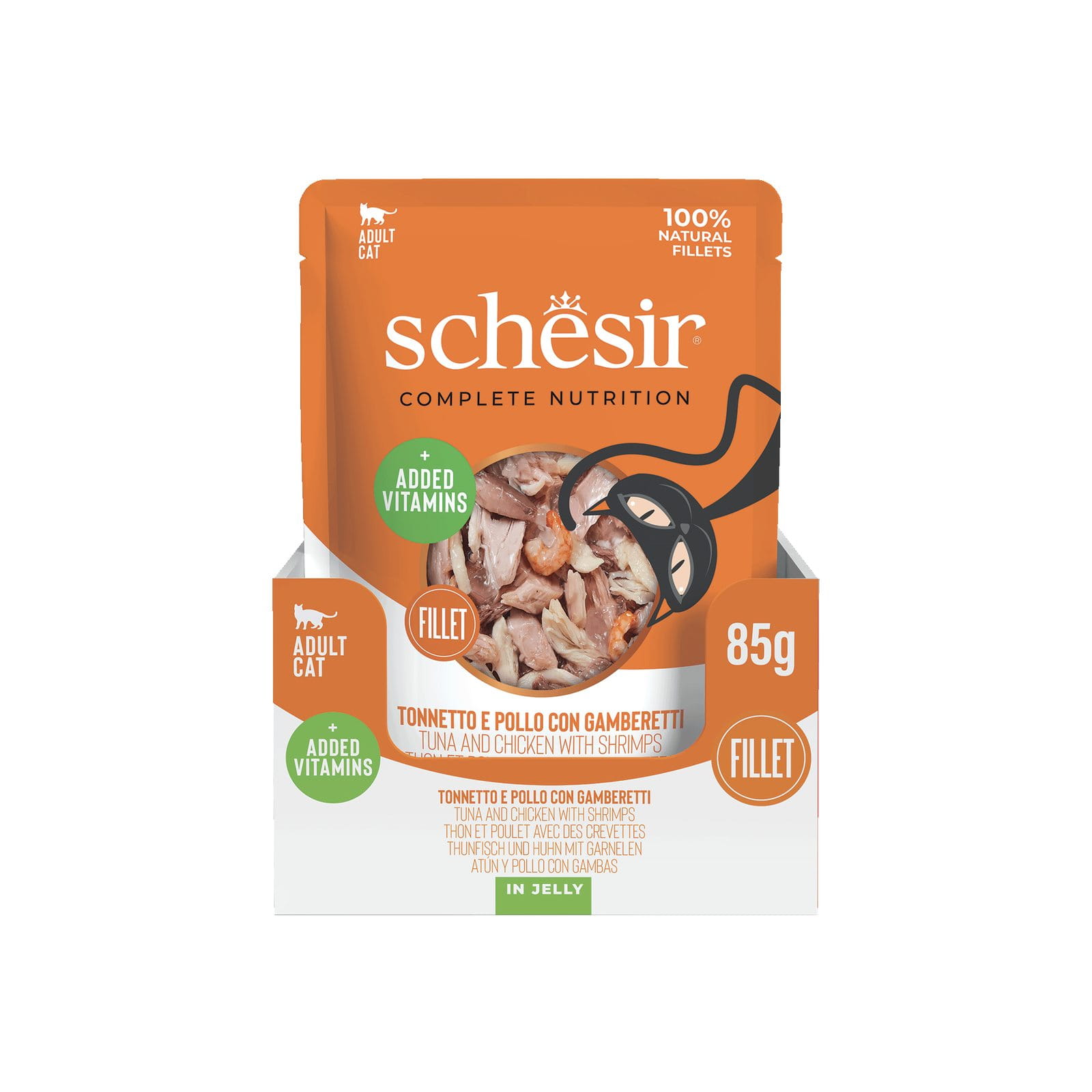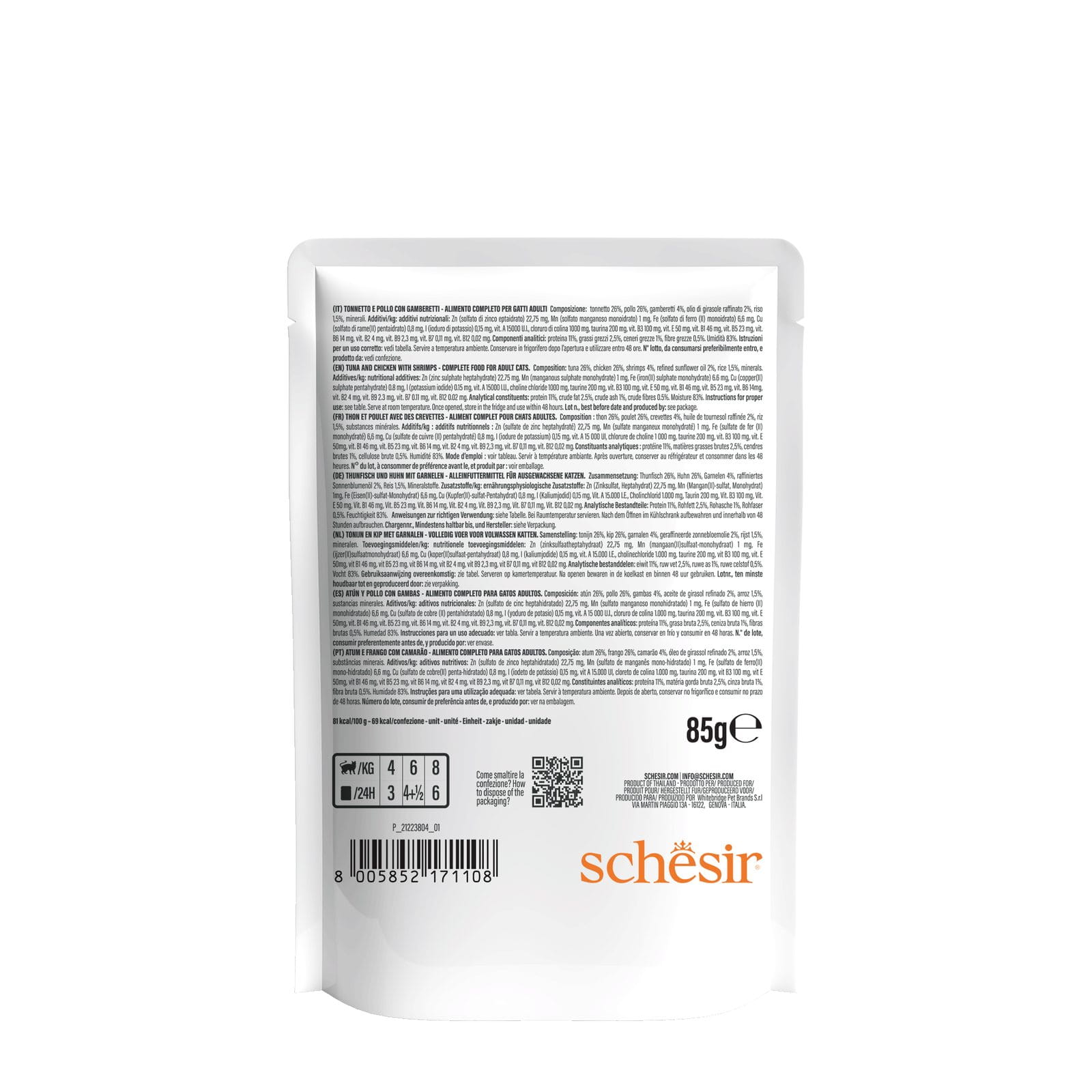 SCHESIR C&B KOT POUCH TUŃCZYK Z KURCZAKIEM I KREWETKAMI FILETY GALARETKA 85g