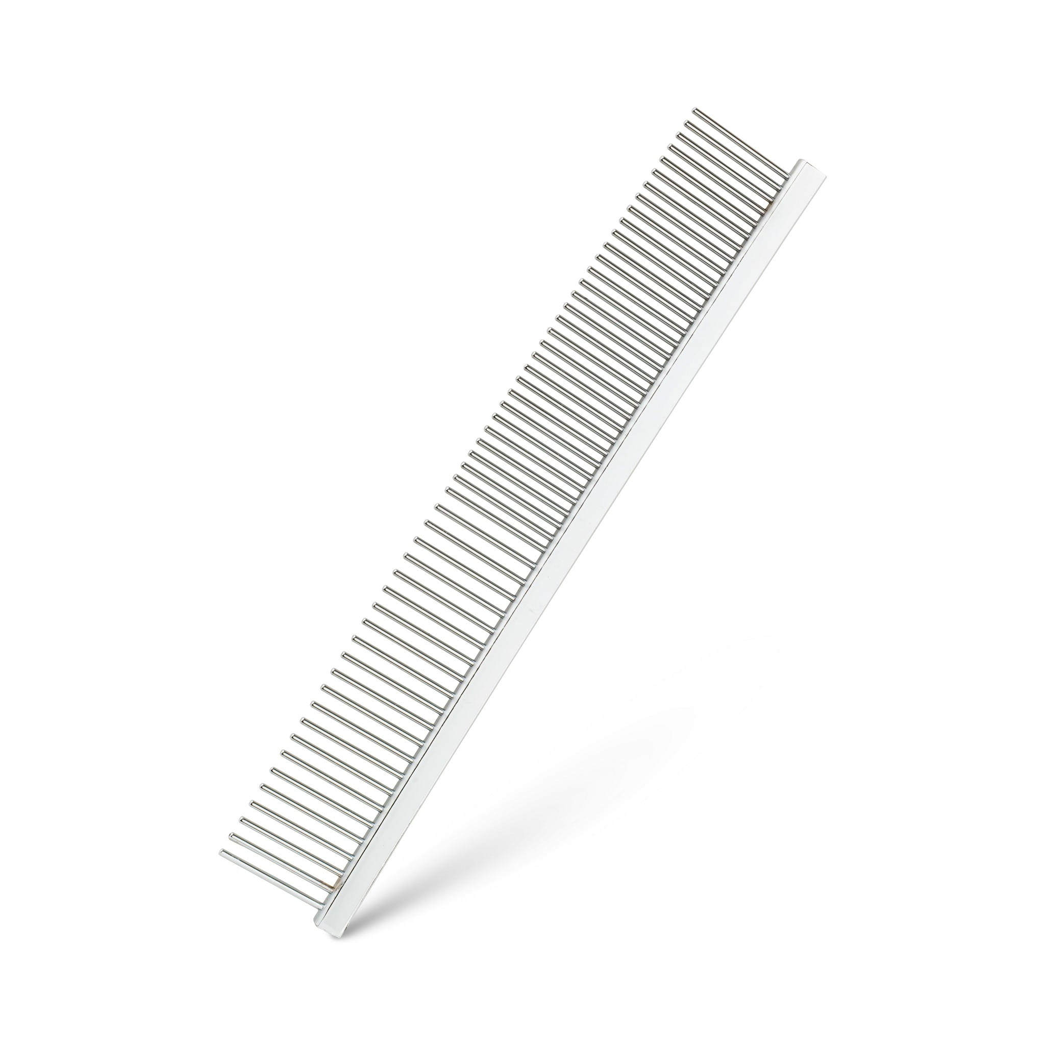 Stalowy grzebień dla zwierząt to niezastąpione narzędzie w pielęgnacji sierści psów i kotów. Idealny do codziennego czesania, usuwania martwych włosów oraz rozplątywania drobnych kołtunów – bez podrażnień i dyskomfortu dla pupila.