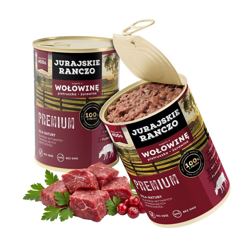 Karma Jurajskie Ranczo Premium – z wołowiną, pietruszką i żurawiną została stworzona z myślą o dorosłych psach aktywnych oraz wymagających dodatkowego wzmocnienia organizmu. To receptura o wysokiej wartości odżywczej, oparta na solidnym źródle białka i funkcjonalnych dodatkach, które wspierają energię, odporność i ogólną kondycję psa.
