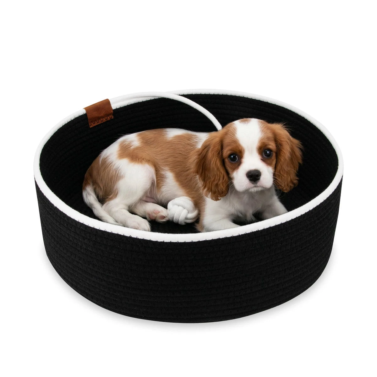 Eleganckie, ręcznie plecione legowisko BASKET BALL w klasycznym, okrągłym kształcie to połączenie naturalnych materiałów i ponadczasowego designu. Wykonane z dwóch kolorów sznurka bawełnianego, zachwyca subtelną strukturą oraz starannym wykończeniem.