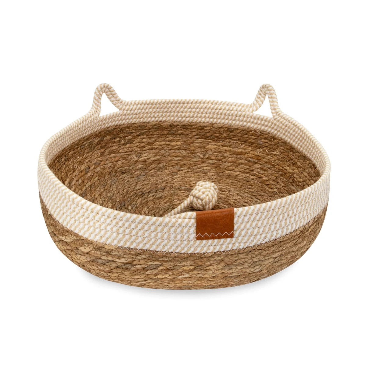 Plecione legowisko TAIL to przytulne miejsce odpoczynku dla kota, które łączy naturalny wygląd z funkcjonalnością. Ozdobione konturem kocich uszek i ogonkiem staje się także placem zabaw dla Twojego pupila. Wyplecione ręcznie z trawy wodnej oraz bawełnianego sznurka jest naturalnym podłożem, które idealnie reguluje temperaturę ciała.