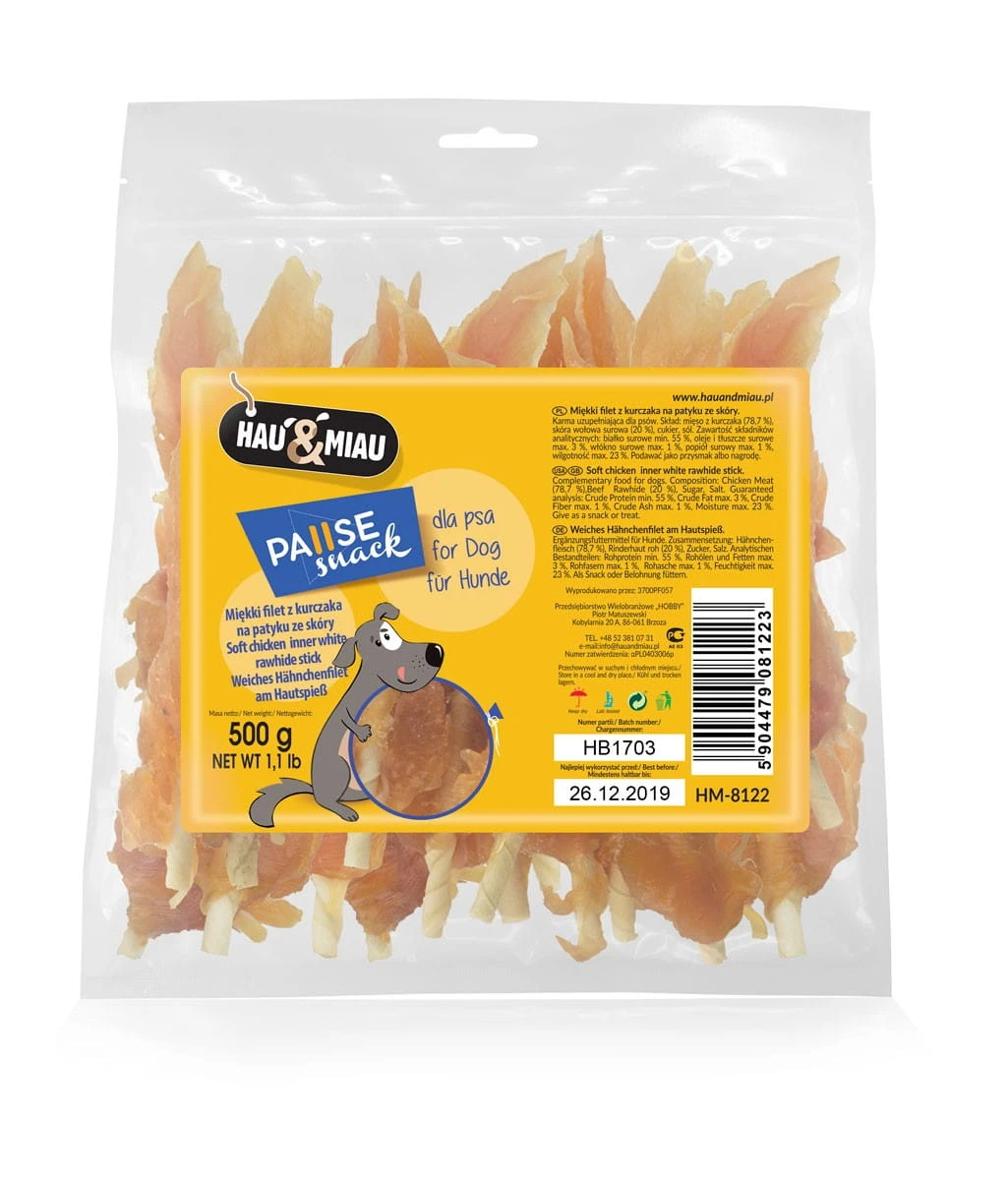 Pausesnack przysmak dla psa, filet z kurczaka na patyku 500g