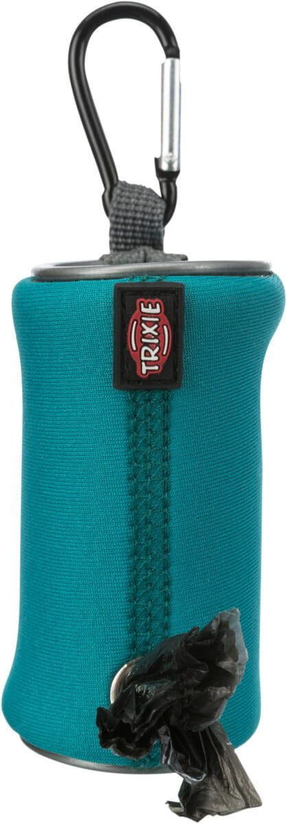 Pojemnik do woreczków na odchody jest praktycznym akcesorium dla właścicieli psów podróżujących. Wyposażony w karabińczyk do łatwego przypięcia, a także wykonany z neoprenu, zapewnia wygodne i higieniczne przechowywanie worków na odchody.