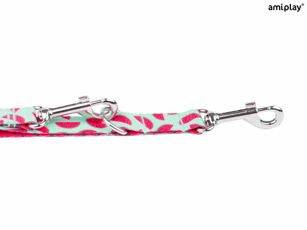 Smycz wykonana jest z wytrzymałej taśmy, odpornej na warunki atmosferyczne o niezwykle radosnej kolorystyce. Jest bardzo łatwa w czyszczeniu, wystarczy przetrzeć ją wilgotną szmatką lub wyprać, gdy zajdzie taka potrzeba i znów jest gotowa do użycia.