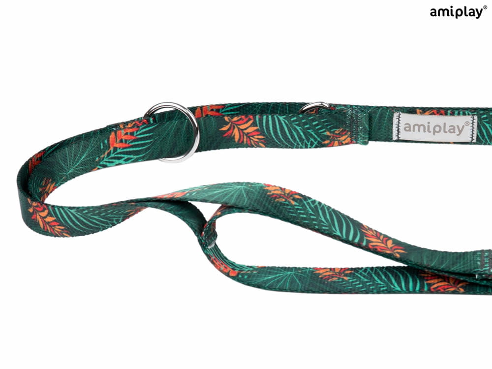 Smycz spacerowa dla psów ras średnich. Przepinana na różne długości, wykonana z wysokiej jakości materiałów, trwała, idealna na miejskie spacery i długie wędrówki.