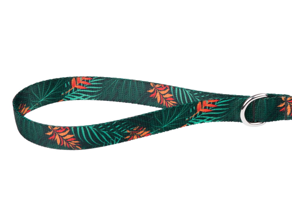 Smycz wykonana jest z wytrzymałej taśmy, odpornej na warunki atmosferyczne o niezwykle radosnej kolorystyce. Zastosowana taśma jest bardzo łatwa w czyszczeniu, wystarczy przetrzeć ją wilgotną szmatką lub wyprać, gdy zajdzie taka potrzeba i znów jest gotowa do użycia. Wygodna rękojeść zapewnia dużą pewność prowadzenia psa. Przy uchwycie znajduje się oczko służące do wygodnego przypięcia pojemnika na woreczki.