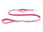 Smycz wykonana jest z wytrzymałej taśmy, odpornej na warunki atmosferyczne o niezwykle radosnej kolorystyce. Zastosowana taśma jest bardzo łatwa w czyszczeniu, wystarczy przetrzeć ją wilgotną szmatką lub wyprać, gdy zajdzie taka potrzeba i znów jest gotowa do użycia. Wygodna rękojeść zapewnia dużą pewność prowadzenia psa. Przy uchwycie znajduje się oczko służące do wygodnego przypięcia pojemnika na woreczki.