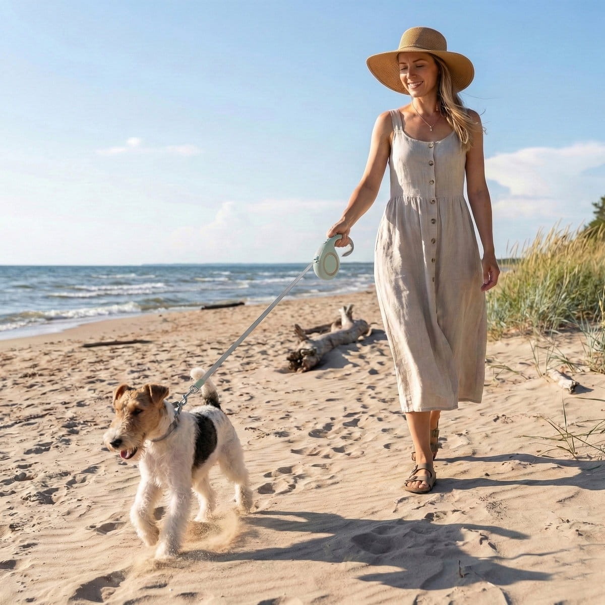 Nowoczesna smycz automatyczna Soft Control o długości 5 metrów to najlepsze rozwiązanie na codzienne spacery z Twoim przyjacielem. Pozwala eksplorować otoczenie bez poczucia ograniczenia, a jednocześnie daje Ci kontrolę w każdej sytuacji – idealna na spacery w parku, w lesie czy na większych przestrzeniach. Mechanizm automatycznego zwijania taśmy umożliwia szybkie dopasowanie długości smyczy w zależności od sytuacji – możesz łatwo skrócić ją w miejscach o większym natężeniu ruchu lub wydłużyć, gdy chcesz dać psu więcej pola. Perfekcyjne wykonanie i starannie dopasowane detale sprawiają, że smycz nie tylko świetnie działa, ale również pięknie się prezentuje.