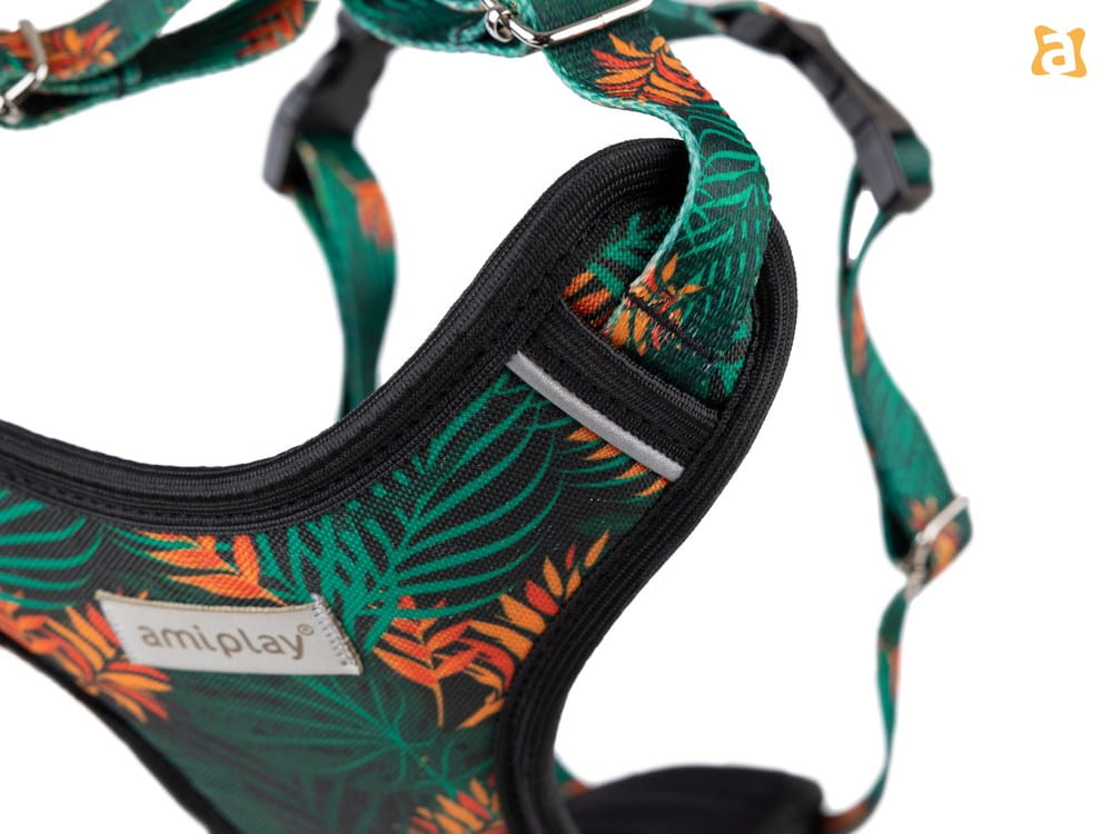 Szelki bezuciskowe BeHappy Discovery to idealny produkt do codziennych spacerów czy treningów. Są w pełni regulowane w dwóch płaszczyznach. Szeroki zakres regulacji pozwala na dokładne dopasowanie do różnych psich sylwetek. Duży, miękki panel na klatce piersiowej doskonale rozkłada nacisk, odciążając tym samym kręgosłup. Taka konstrukcja sprawia, że szelki nie krępują ruchów i są najlepiej przystosowane do budowy anatomicznej zwierzęcia. Ich użytkowanie jest komfortowe i przede wszystkim bezpieczne. Użyte do produkcji miękkie taśmy oraz najwyższej jakości materiały są delikatne i wygodne dla zwierzęcia, nawet podczas wielogodzinnych spacerów. Miękka, oddychająca wyściółka zapobiega otarciom a elementy odblaskowe zwiększają widoczność po zmroku.