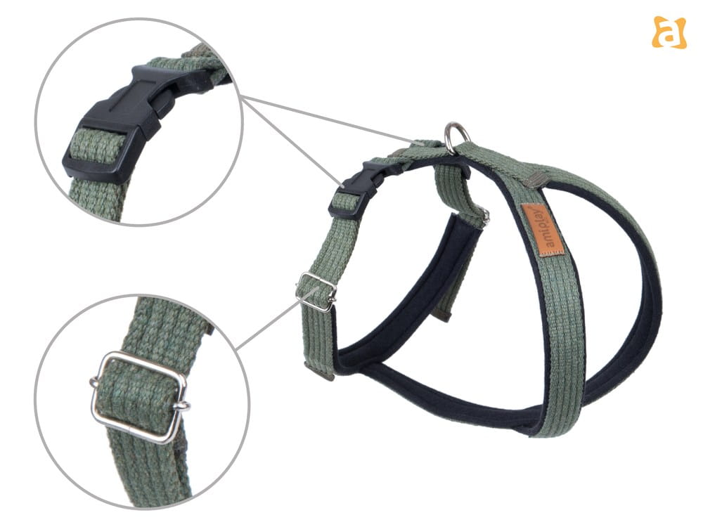 Seria amiplay Cotton przeznaczona jest dla miłośników aktywnego spędzania czasu z psem. To świetna propozycja dla osób, które cenią sobie funkcjonalność i różnorodność. Produkty wykonane są z mocnej taśmy ze 100% bawełny, która nie obciera ani nie odparza psa, tym samym zapewniając bezpieczeństwo. Firma amiplay wychodzi naprzeciw tym oczekiwaniom tworząc produkty wysokiej jakości, które będą służyły przez bardzo długi czas. Stonowana kolorystyka oraz ekologiczna bawełna pozwalają na tworzenie kompletów w skandynawskim stylu, które przypadną do gustu miłośnikom naturalnego piękna.