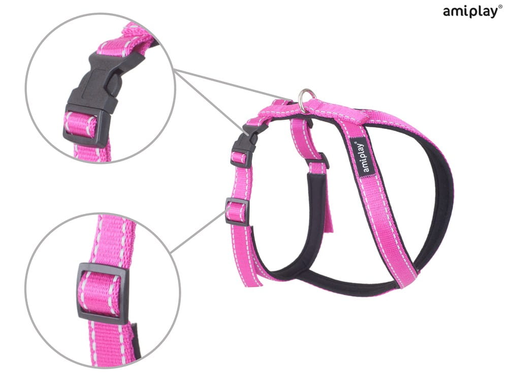 Seria Reflective przeznaczona jest dla miłośników aktywnego spędzania czasu z psem, szczególnie tych, którzy wysoko cenią bezpieczeństwo. Firma amiplay wychodzi naprzeciw tym oczekiwaniom tworząc produkty wysokiej jakości, które będą służyły przez bardzo długi czas. Dodatkowo są one łatwe w utrzymaniu czystości, ponieważ jeśli tylko zajdzie taka potrzeba, można je wyprać i znów są gotowe na kolejne przygody! Bogata kolorystyka pozwala tworzyć komplety pasujące do każdego pupila, natomiast odblaskowe nici zwiększają bezpieczeństwo podczas spacerów po zmroku.